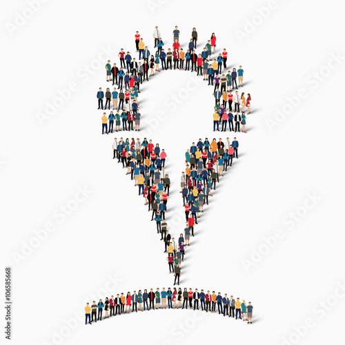Большая группа людей, образующих восклицательный знак, стоящих вместе, плоская векторная иллюстрация. Собирается толпа людей. Социальные проблемы, концепция народонаселения.