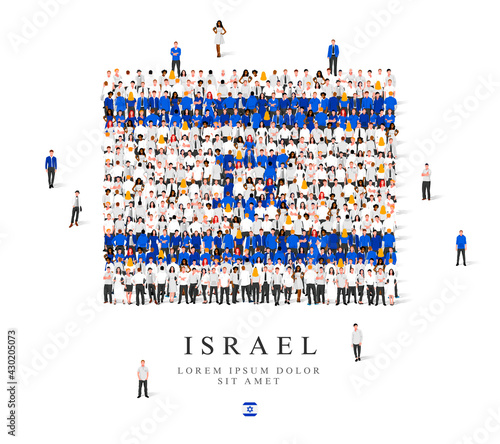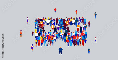 Большая группа людей, образующих круговую диаграмму, стоящих вместе, плоская векторная иллюстрация. Собирается толпа людей. Статистика, демография населения.