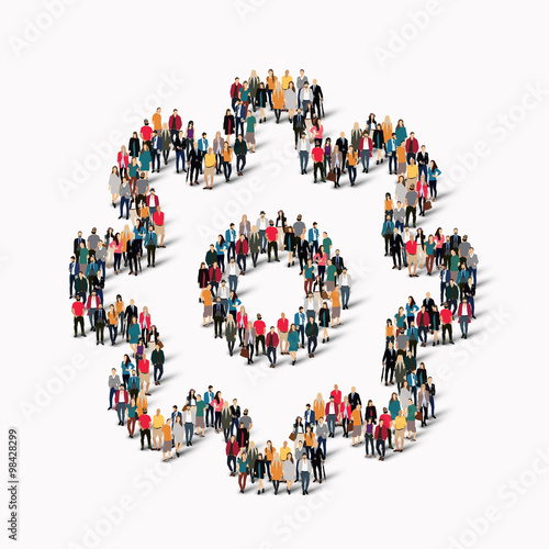 Большая группа людей, образующих знак доллара США, стоящих вместе, плоская векторная иллюстрация. Собирается толпа людей. Символ бизнеса, финансов, банковского дела.