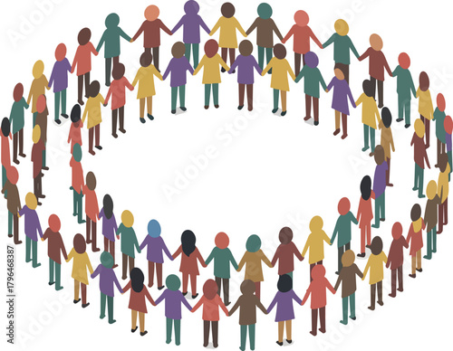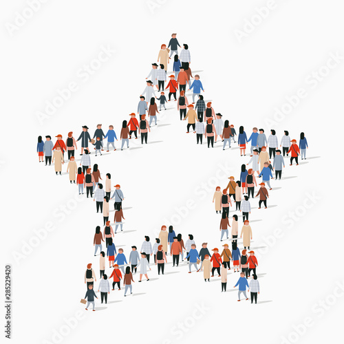 Большая группа людей, стоящих в длинной очереди, плоская векторная иллюстрация. Собирается толпа людей.