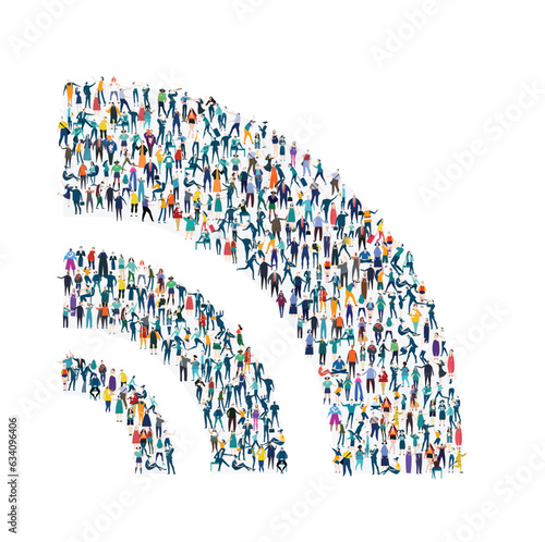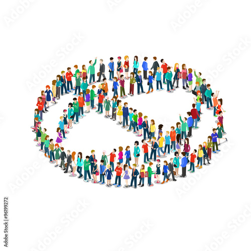 Большая группа людей, стоящих вместе, образуя символ цели со стрелкой, плоская векторная иллюстрация. Собирается толпа людей. Мишень в яблочко. Достижение цели.