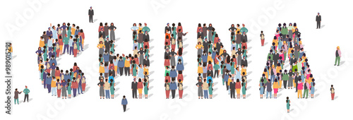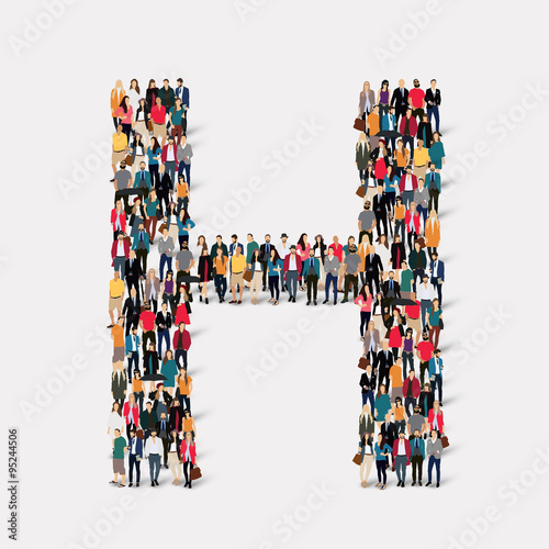 Присоединяйтесь к нашей команде типографских баннеров. Большая группа людей, стоящих вместе в форме букв, плоская векторная иллюстрация. Собирается толпа людей. Наем, трудоустройство, возможности трудоустройства, подбор персонала.