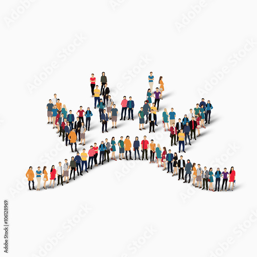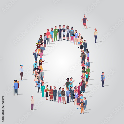 Большая группа людей, стоящих вместе, образующих командное слово, плоская векторная иллюстрация. Собирается толпа людей. Типографский баннер командной работы. Бизнес-концепция.