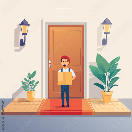 Векторная иллюстрация бариста, готовящего кофейный напиток с эспрессо и парным молоком. Интерьер кофейни. Элемент дизайна в плоском стиле Latte concept.