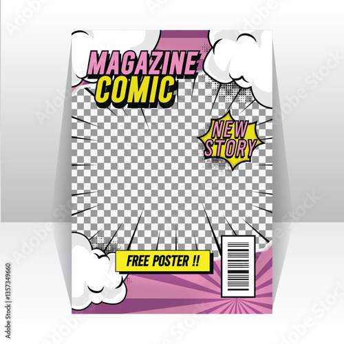 Рекламный плакат порошкового стирального порошка. Векторная реалистичная иллюстрация. Шаблон дизайна упаковки пакета из фольги для стирального порошка и чистая мужская рубашка.