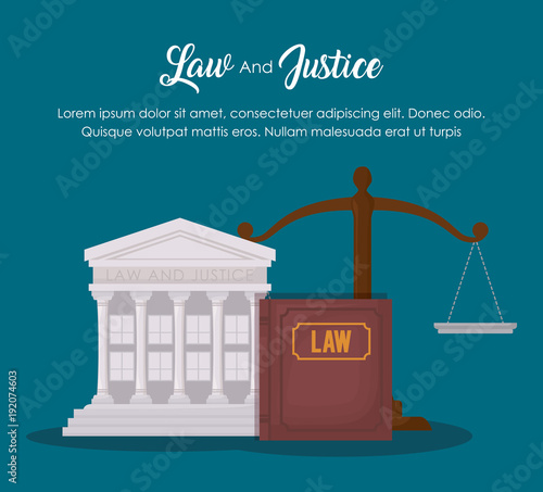 Векторная иллюстрация концепции закона и справедливости в плоском стиле. Элементы дизайна, символы и значки.