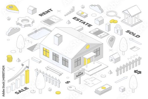 Юридическая инфографика, векторная плоская изометрическая иллюстрация. Здание суда, Свод законов, шкалы правосудия, статистика преступности, круговая диаграмма с процентным соотношением.
