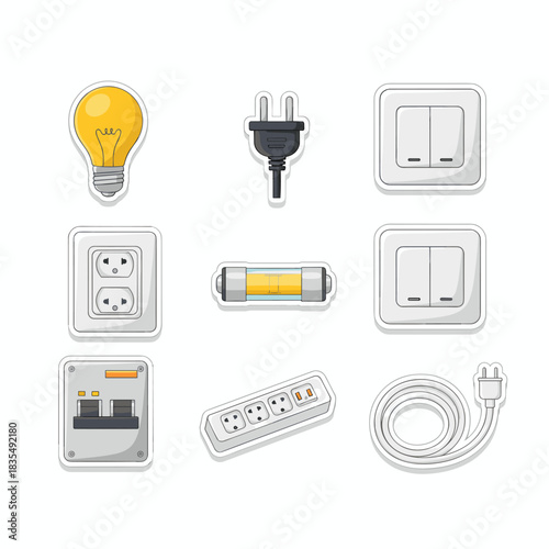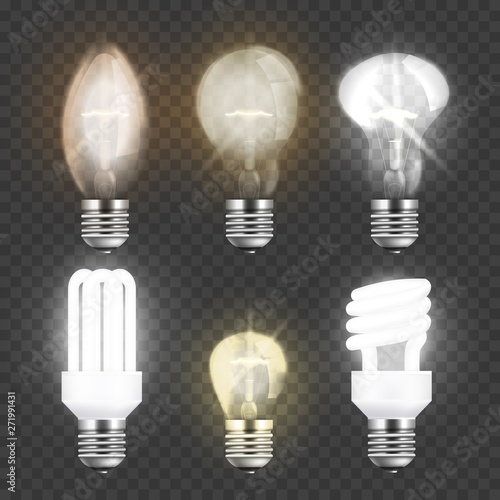 Набор светодиодных ламп, векторная иллюстрация, изолированная на прозрачном фоне. Прожектор и светильники с высокими потолками, ламповые светильники, бытовые лампы и т.д. Энергосберегающие лампы.