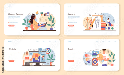 Виды досуга. Медитация, йога, рисование, здоровое питание. Экраны мобильных приложений. Векторный шаблон баннера для разработки веб-сайтов и мобильных устройств. Иллюстрация дизайна веб-сайта и пользовательского интерфейса.