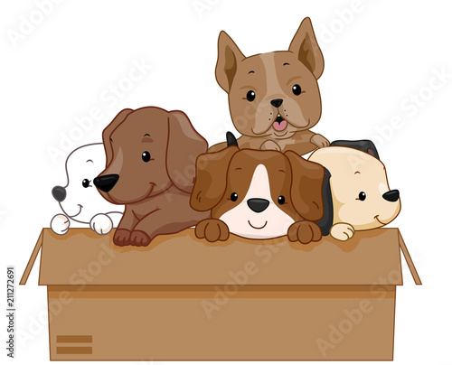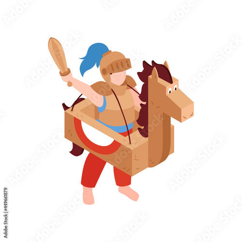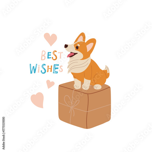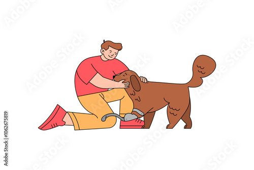 Маленький мальчик, получающий щенка в подарок, векторная иконка на изолированном фоне.