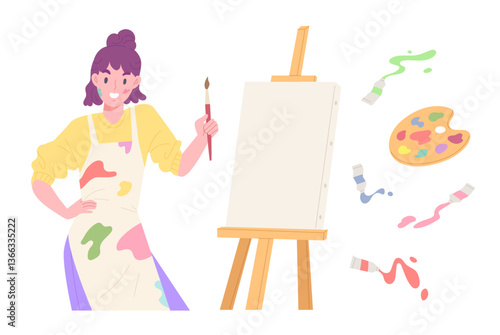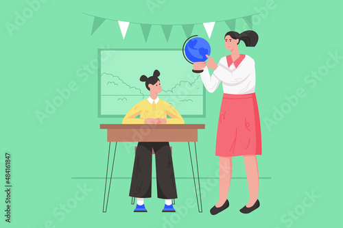 Маленькая девочка поливает цветок дома векторной иконкой, изолированной на белом фоне
