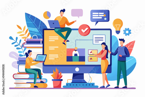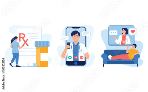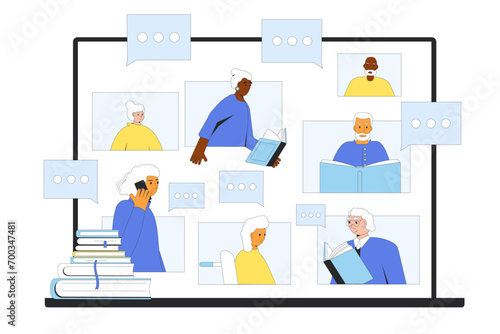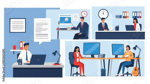 Набор аукционных композиций, векторная иллюстрация. Покупка и продажа недвижимости на аукционе, онлайн-торги, мужские и женские персонажи аукциониста и покупателей.