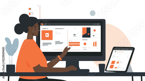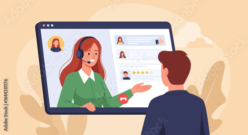 Прямая трансляция видео с настольного компьютера, смартфона, векторная иллюстрация. Онлайн-курсы, тренинги, занятия, ведение блогов, дистанционное обучение. Мобильное приложение для прямой трансляции.