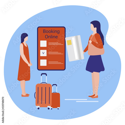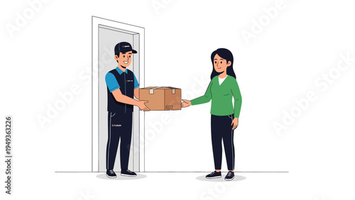 Векторная иллюстрация погрузчика, толкающего тележку с холодильником в картонной коробке. Услуги компании по переезду и доставке грузов. Элемент дизайна в плоском стиле профессионального рабочего, значок, выделенный на белом фоне.