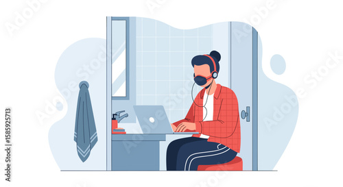 Векторная иллюстрация рабочего погрузчика, поднимающего картонные коробки с помощью автопогрузчика. Концепция погрузочной машины элемент дизайна в плоском стиле.
