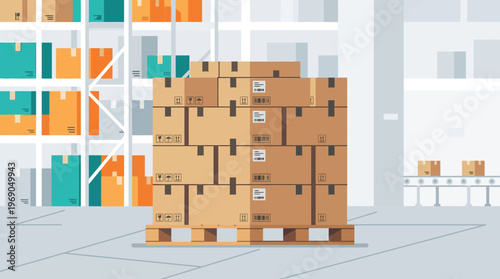 Концептуальный баннер службы логистики и доставки. Интерьер склада. Векторная иллюстрация в плоском стиле дизайна.