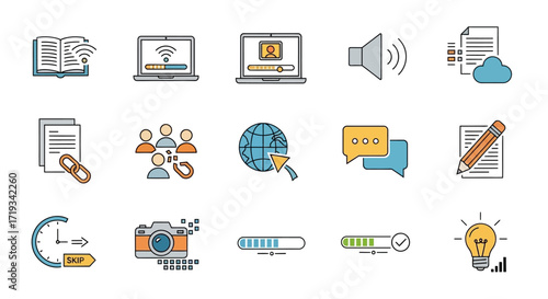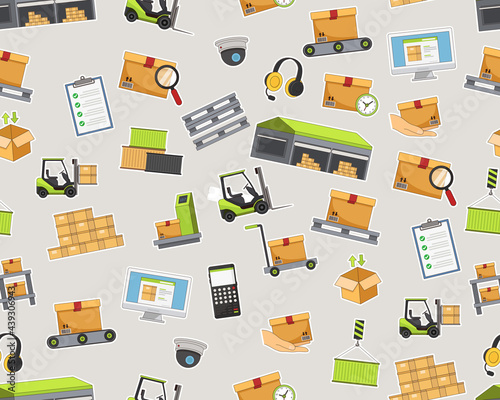 Логистическая бесшовная схема. Векторный современный плоский дизайн с тонкой линией с символами распределения, логистической доставки.
