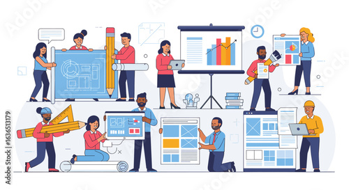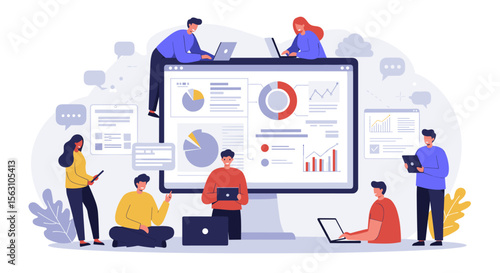 Вектор службы "Потерянные и найденные". Люди стоят в очереди к стойке регистрации терминала аэропорта с администратором. Поиск багажа и личных вещей, их нахождение и возврат владельцу иллюстрация