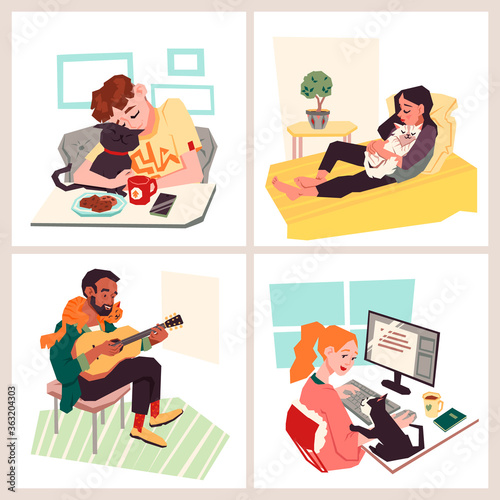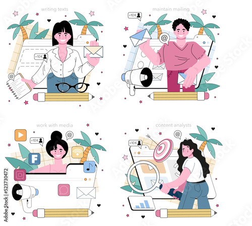 Любовный набор. Иллюстрация романтических людей. Плоский векторный символ. Молодые мужчина и женщина, любящие здоровую органическую пищу. Старый парень и девушка онлайн в веб-чате. Пара празднует рождение ребенка