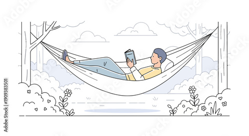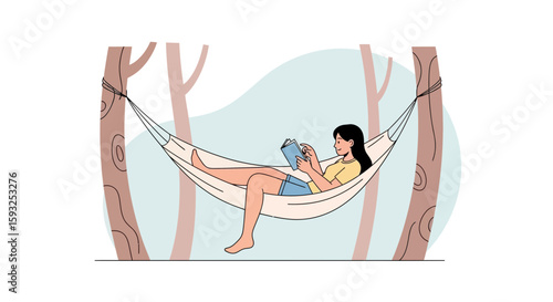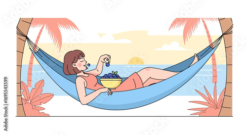 Влюбленная пара в векторе гамака. Иллюстрация романтических свиданий молодого человека и женщины. Путешествие в отпуск, любовные отношения и концепция медового месяца