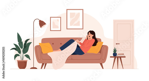 Любящая мать, поддерживающая грустного сына, сидящего на домашнем диване, векторная иллюстрация, изолированная на белом фоне. Приятная беседа, концепция общения родителей и детей