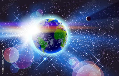Векторная инфографика лунного затмения. Солнце, земля и полная луна точно выровнены с землей посередине.