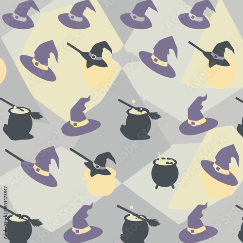 Набор шляп фокусника, плоская векторная изолированная иллюстрация. Рука иллюзиониста с волшебной палочкой и шляпой-цилиндром для выполнения трюков с птицей, кроликом, букетом цветов, лентами, игральными картами.