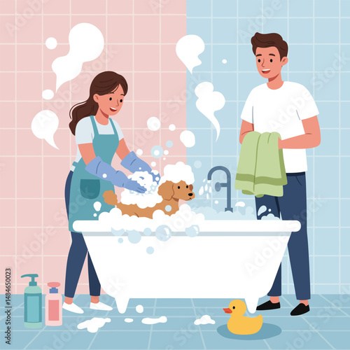 Салон макияжа с художником-стилистом и векторной иллюстрацией клиента. Зеркало, мебель и косметический спрей. Женщина делает макияж девушке, дает консультацию. Концепция красоты и моды