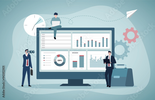Векторная иллюстрация большого монитора компьютера с рукопожатием и крошечными персонажами мультфильмов, заключающими сделку. Успешное подписание контракта, партнерства, концепции сотрудничества для веб-баннера, веб-страницы.