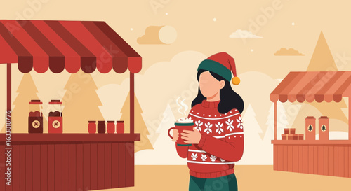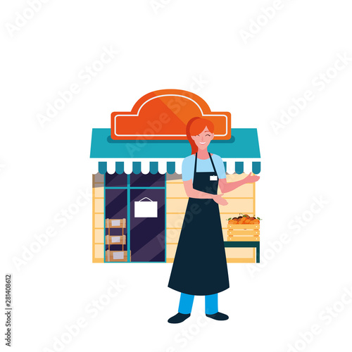 Векторная иллюстрация женщины-работницы кофейни, готовящей кофе. Интерьер кофейни с коммерческим автоматом для приготовления кофе эспрессо. Дизайн в плоском стиле.