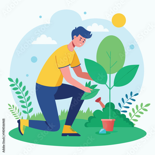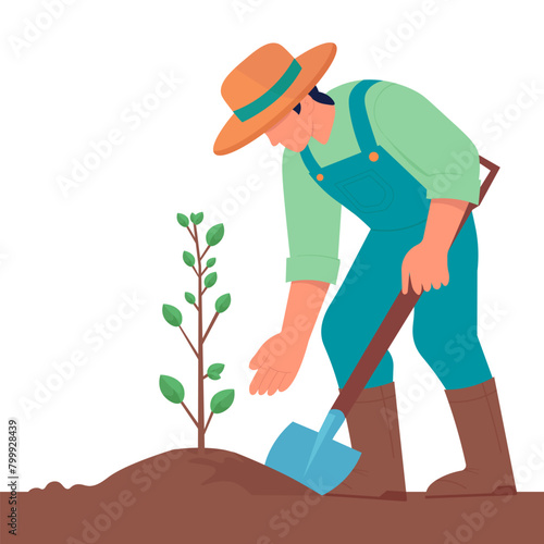 Мужчина-азиатский фермер, выращивающий рис на изолированном фоне векторной иконки.
