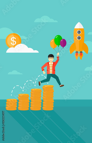 Векторная иллюстрация мужчины-бадминтониста, прыгающего и делающего сокрушительный удар на открытой площадке. Спортсмен тренируется с ракеткой и воланом на улице. Плоская конструкция