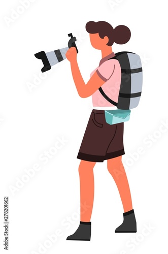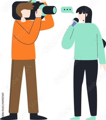 Мужчина-оператор, держащий векторный значок видеокамеры, изолированный на белом фоне.