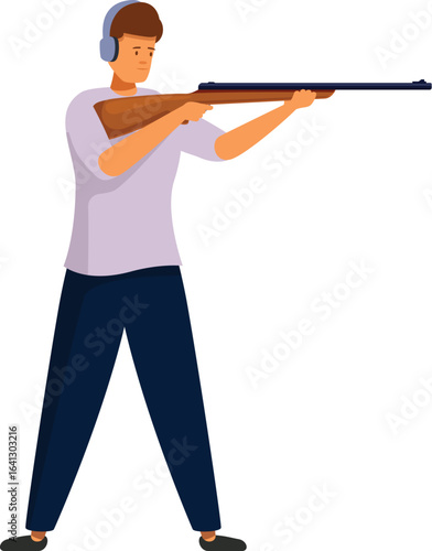 Человек целится из дробовика векторная иконка изолирована на белом фоне