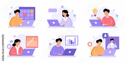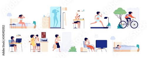 Персонажи-мужчина и женщина-убирают дом и выполняют домашнюю работу. Набор векторных иллюстраций людей, убирающих дом, вытирающих пыль, стирающих одежду. Работа по дому, стирка, стиральная машина.