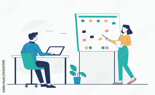 Деловые люди, делающие перерыв на кофе, плоская векторная иллюстрация. Персонажи мужского и женского пола, коллеги, друзья, пьющие кофе навынос в офисе. Время чаепития.