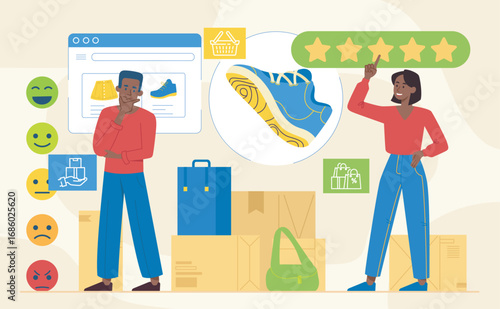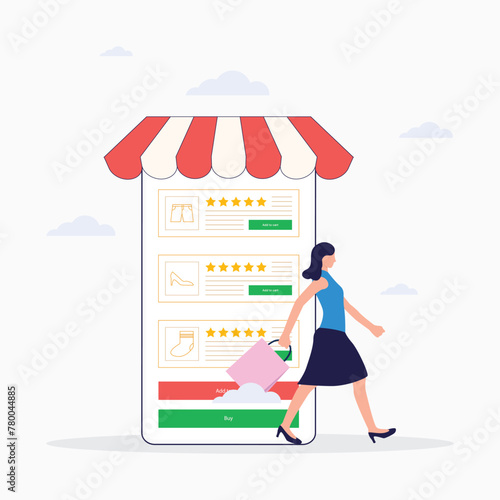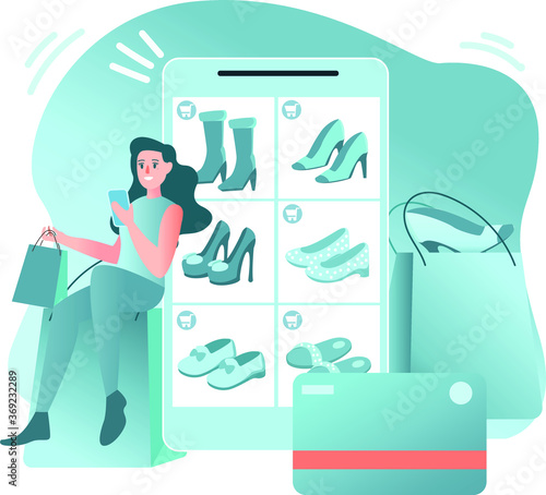 Мужчина покупает обувь в интернет-магазине на смартфоне векторная иконка, изолированная на белом фоне