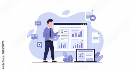 Человек, выбирающий видеоканал на портативном компьютере, чтобы начать просмотр, плоская векторная изометрическая иллюстрация. Подкастинг, концепция мультимедийного контента.