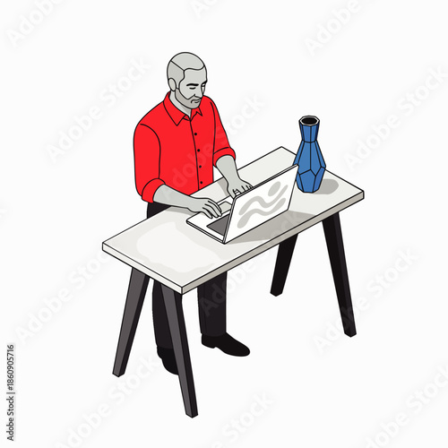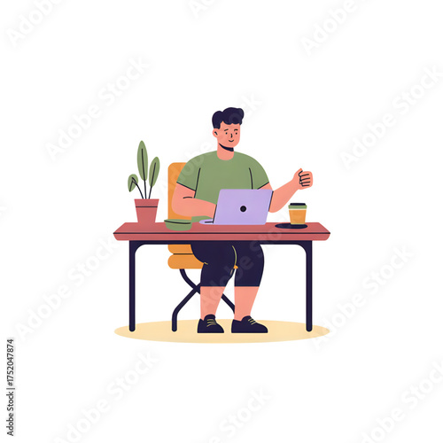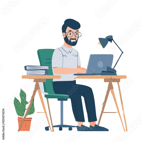 Человек, мечтающий на рабочем месте в офисе векторная иконка, изолированная на белом фоне
