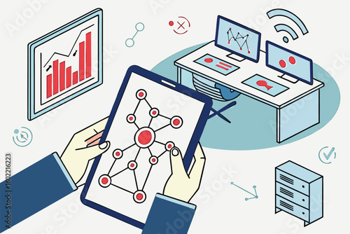 Мужчина-геймер в наушниках играет в видеоигру по хоккею с шайбой по телевизору с контроллером, сидя на диване, плоская векторная изометрическая иллюстрация. Онлайн-игры, игры для игровых приставок, киберспорт.