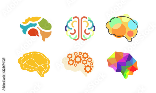 Силуэты человеческих голов с шестеренками, зубчатыми колесами и абстрактными яркими формами, векторная иллюстрация в стиле бумажного искусства. Мыслящий мозг. Творческий и логический склад ума. Мозговой штурм, сила мозга, креативность.