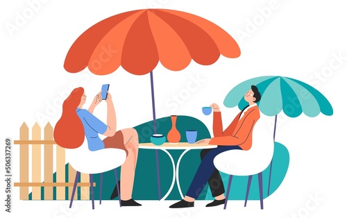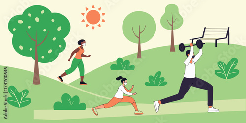 Мужчина держит весы с фруктами и фаст-фудом, плоская векторная иллюстрация. Равновесие. Сбалансируйте здоровое питание и нездоровую пищу. Похудение, правильное питание. Сбалансированное питание против нездоровой пищи.