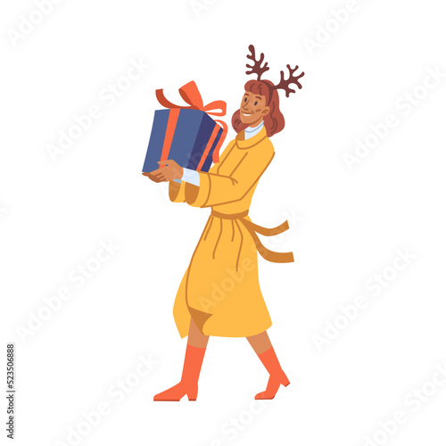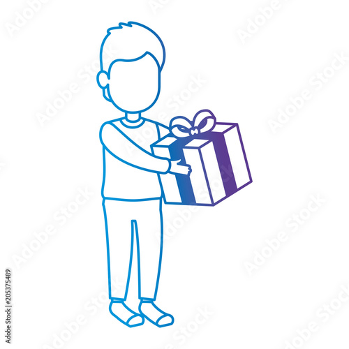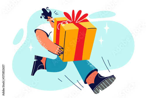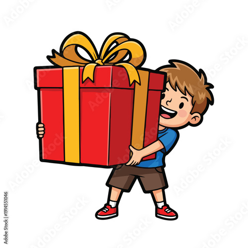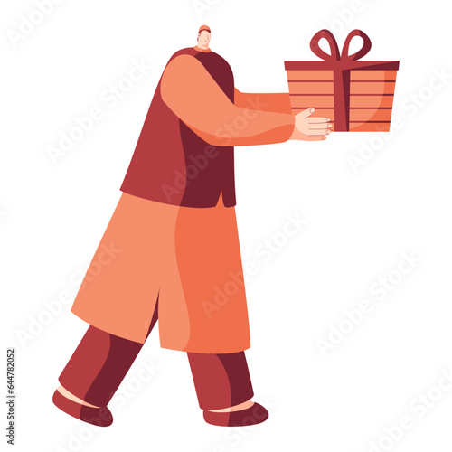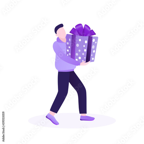 Мужчина держит большую подарочную коробку. Векторная иллюстрация в стиле ретро-комиксов поп-арт. Парень с подарком на рождество или день рождения.