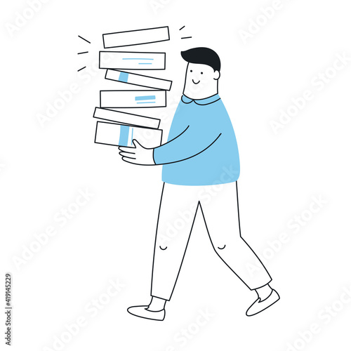 Человек в медицинской защитной маске, бегущий с корзиной, полной продуктов, векторный значок, изолированный на белом фоне. Концепция вирусной пандемии.