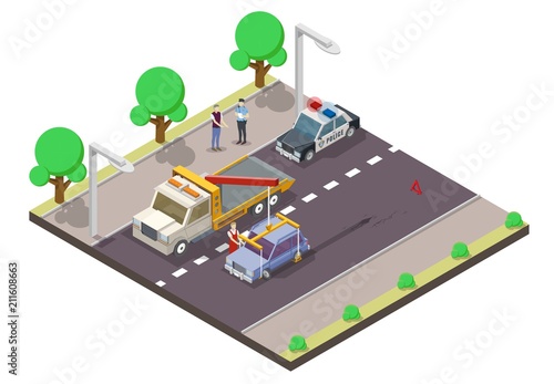 Мужчина в инвалидной коляске на доступной парковке для автомобилей, плоская векторная изометрическая иллюстрация. Парковка для людей с ограниченными физическими возможностями.