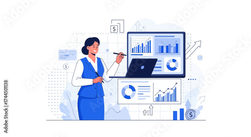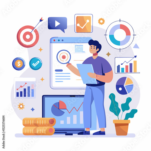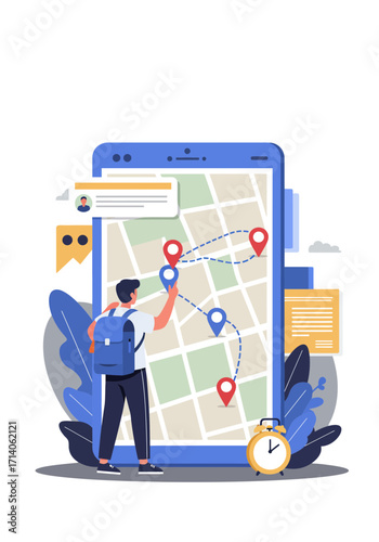 Автобусная остановка. Человек в инвалидной коляске садится в городской автобус с пандусом для доступа инвалидных колясок, плоская векторная иллюстрация. Образ жизни инвалида. Доступность городского общественного транспорта. Безбарьерная среда.