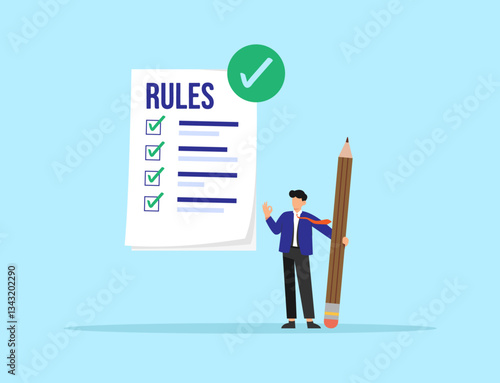 Человек, делающий жизненный выбор, стоя перед дорожными знаками направления "да" и "нет", плоская векторная иллюстрация. Решение, меняющее жизнь.