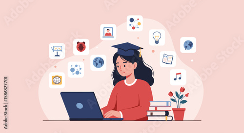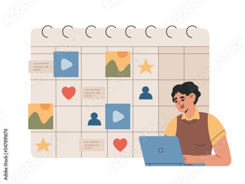 Молодой человек делает покупки онлайн с помощью портативного компьютера, плоская векторная иллюстрация. Персонаж мужского пола, совершающий покупки онлайн. Интернет-магазин, электронная коммерция.
