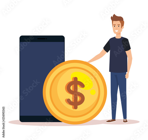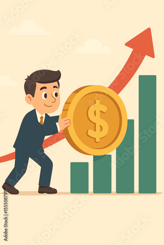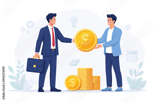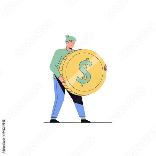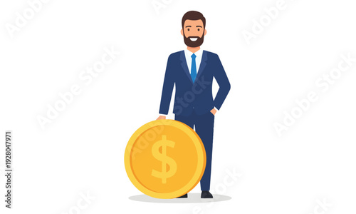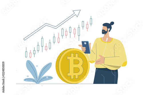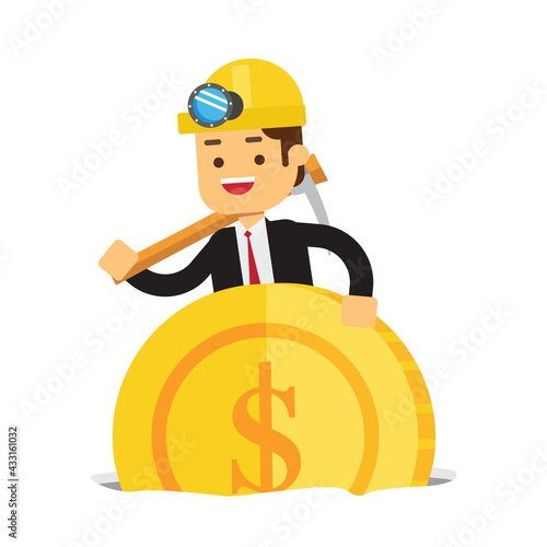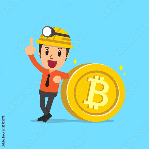 Бизнесмен-майнер с векторной иконкой биткоина, выделенной на белом фоне. Концепция криптовалютного кошелька, майнинга и инвестиций