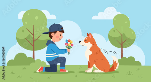 Мужчина собирает съедобные грибы в осеннем лесу. Корзина, полная грибов. Векторная иллюстрация концепции хобби осеннего сезона на открытом воздухе.